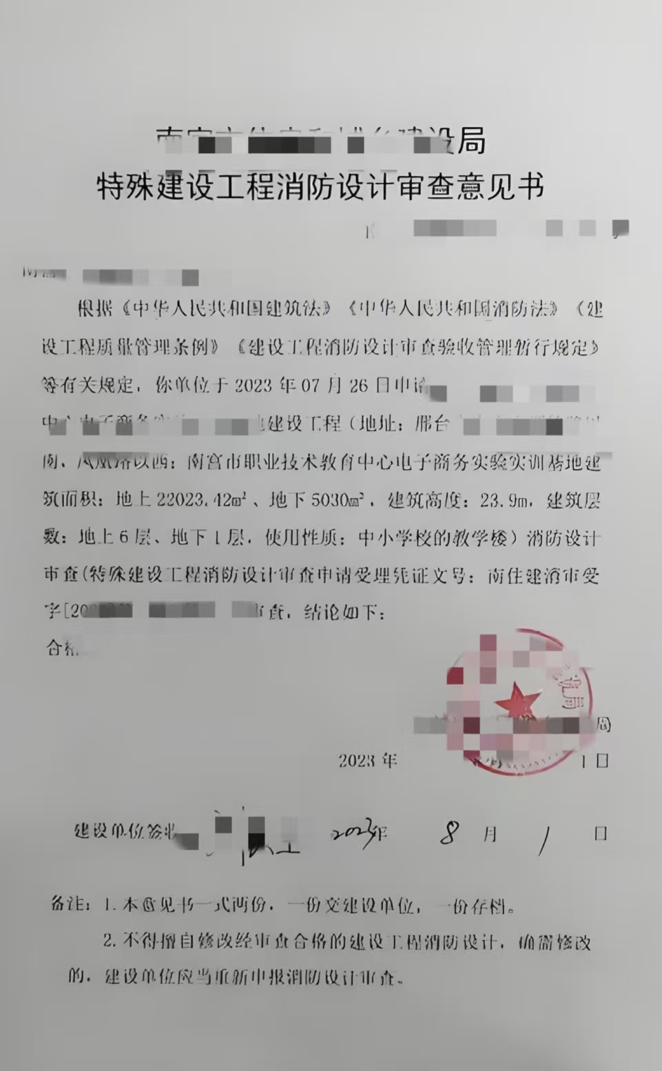 南宫市建设工程消防技术审查意见书
